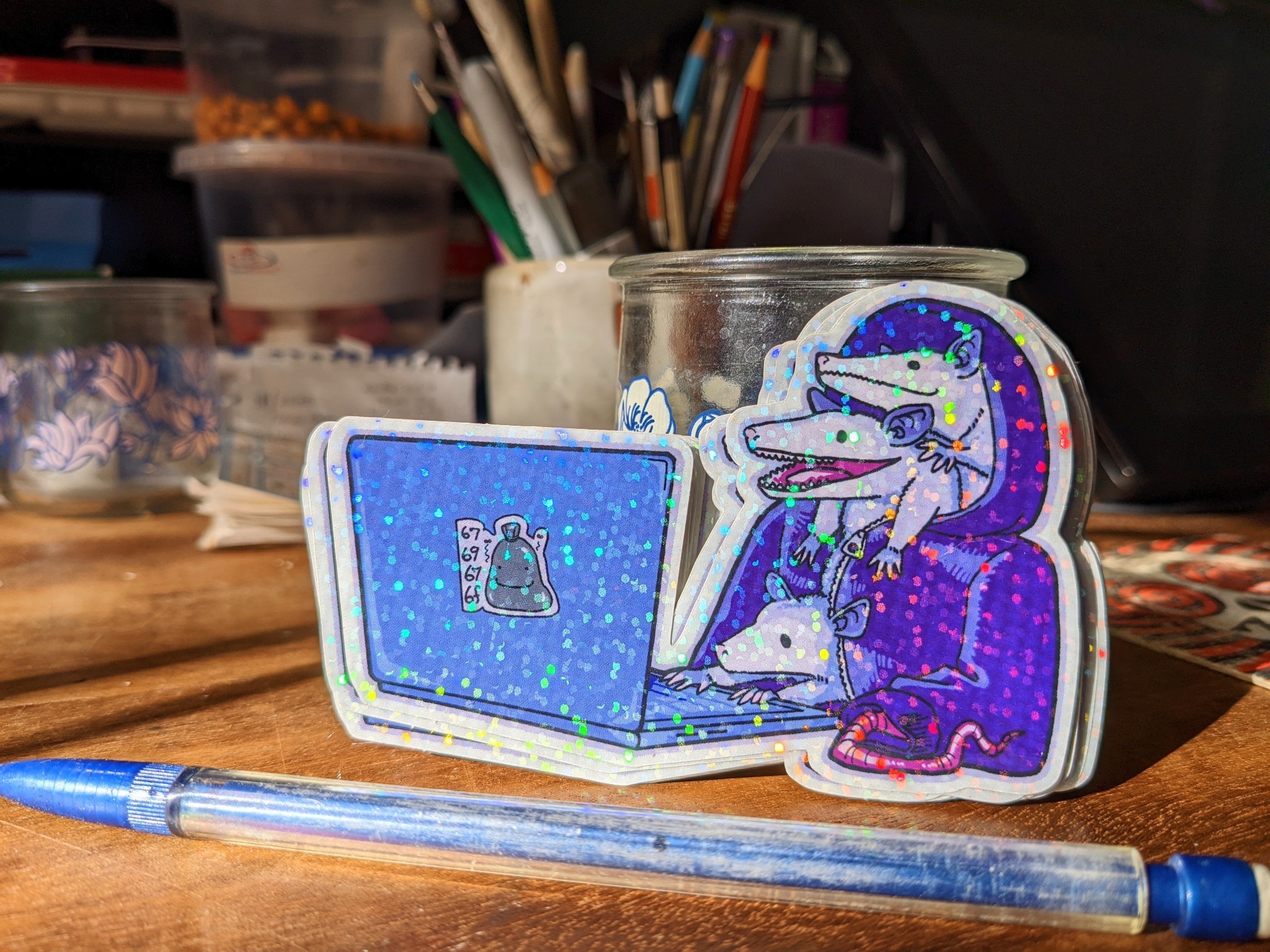 Hacker Possums Glitter Sticker